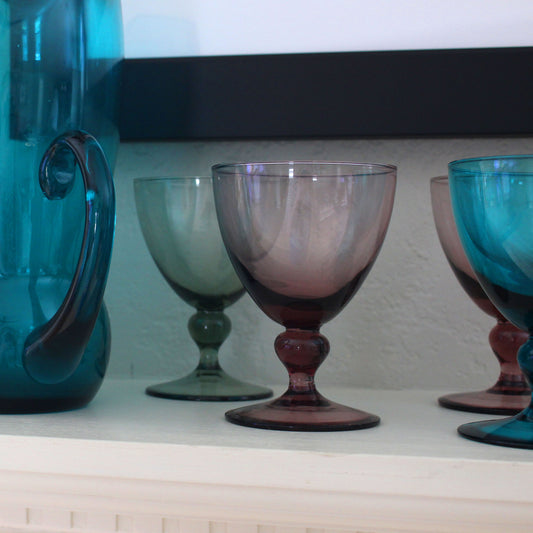 Vintage Colorful Glass Pitcher and Stemware Set