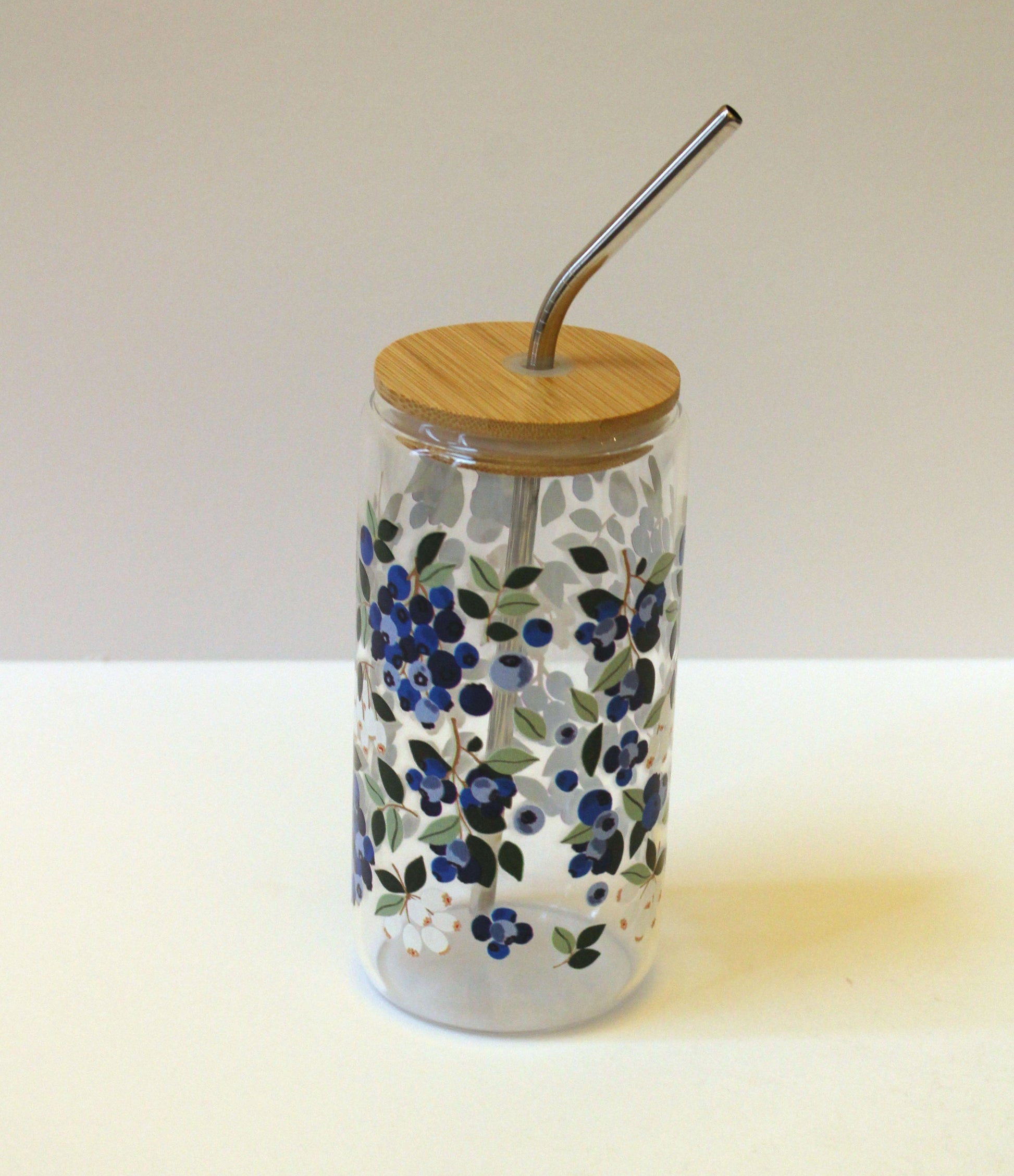 Sip sustainably and stylishly with the Blueberry Field Glass Can. Perfectly blending function and charm, this eco-friendly tumbler features a delicate blueberry pattern that adds a touch of nature-inspired elegance to your daily hydration routine. Crafted with care and delightful details, this unique drinkware makes for the perfect gift to brighten housewarmings, express appreciation to teachers, birthdays and so much more. Complete with a bamboo lid and a stainless steel straw, this sweet glass effortlessly combines rustic charm with modern functionality, making it the perfect companion for your favorite beverages on the go.