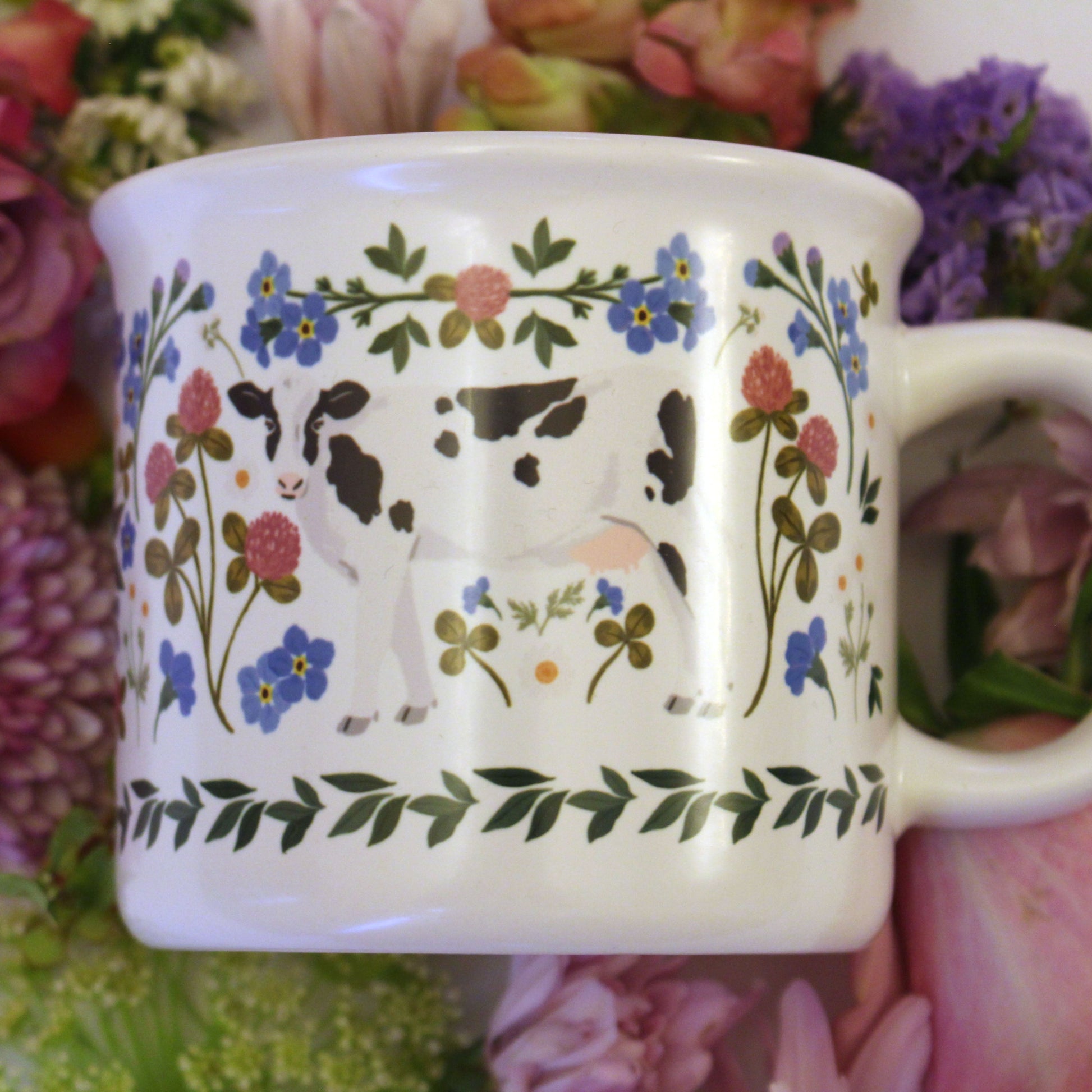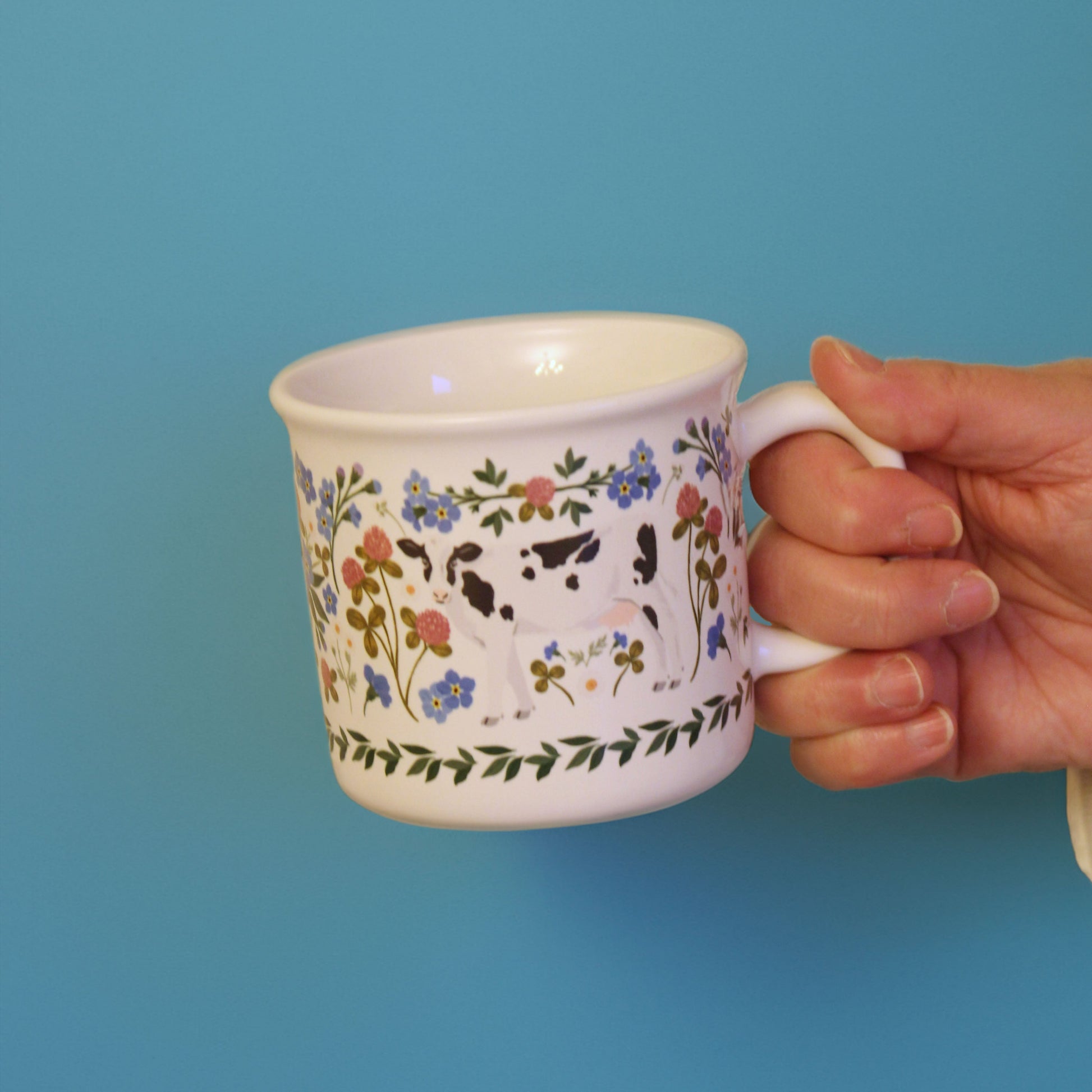 Sip your favorite beverage in style with the Milk Cows Folk Floral Mug! This charming large ceramic mug beautifully combines the rustic charm of farmhouse living with the delightful imagery of Holstein cows and a whimsical cottage floral design. This folk-inspired cow design mug brings rustic warmth and whimsy to your morning coffee or tea. Featuring a beautifully detailed illustration of a cow in traditional folk art patterns, this mug is perfect for animal lovers, farmhouse décor enthusiasts, or anyone who enjoys a unique twist on everyday essentials. This mug makes a thoughtful gift for friends and family who appreciate farm life, floral design, or simply love a good cup of something warm. Ideal for birthdays, housewarmings, or special occasion.