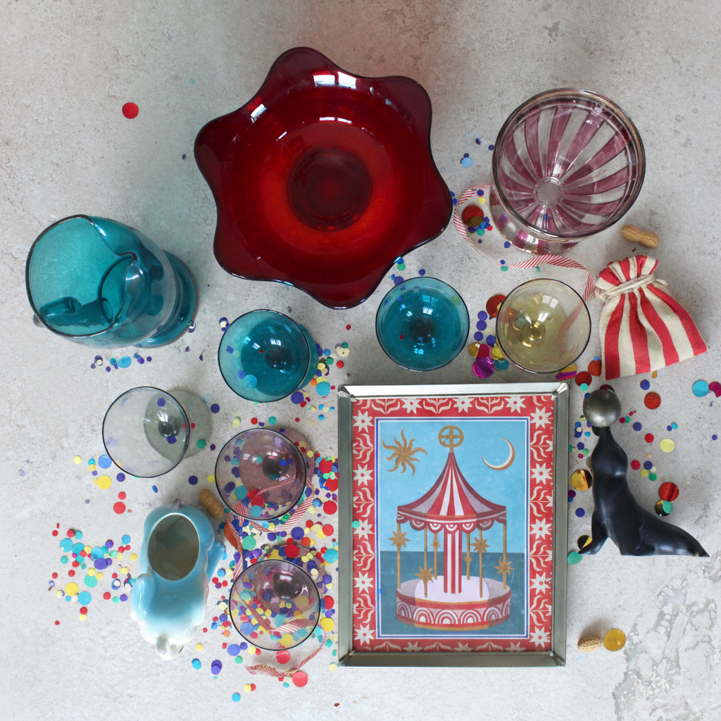 This vintage red glass bowl features a bold wavy edge and rich saturated color. It works as both servingware and decorative centerpiece. Style it on a dining table, console, or coffee table for instant impact. The sculptural rim catches light beautifully and adds movement to the piece. A standout addition to any vintage glass collection.